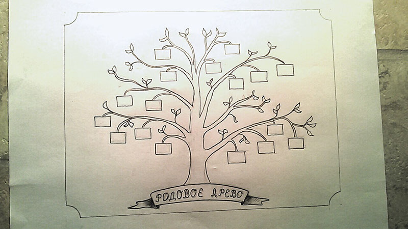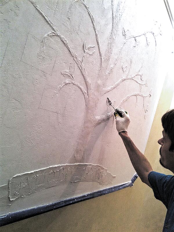 Объемный рисунок: «РОДОВОЕ ДРЕВО». Барельеф, лепнина (2х1.6м). На каждой ветке древа размещаются по одной фотографии в рамке, исходя из родословной семьи.