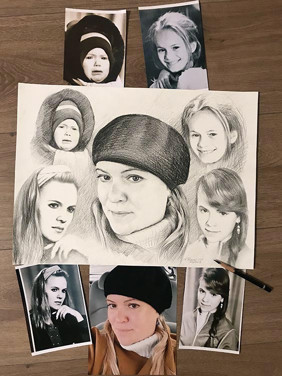Портрет женщины к юбилею. Собрали фотографии из семейного альбома. Разный возраст. 40чх30см