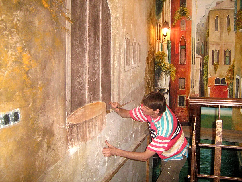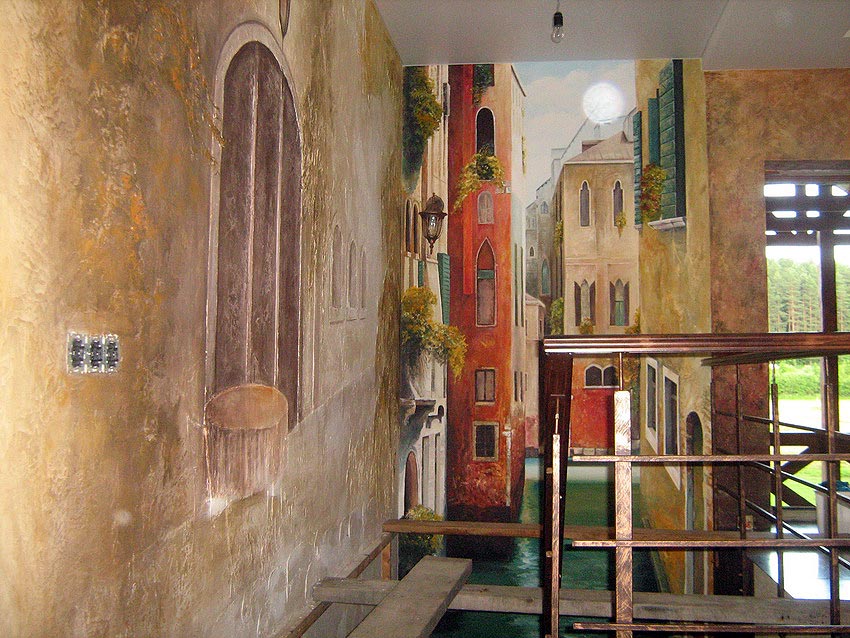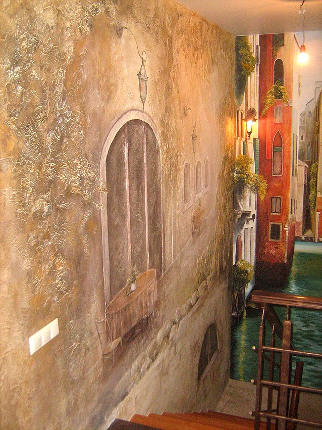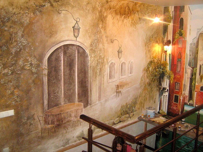 Художественная роспись с элементами лепнины. "Венеция". Кафе