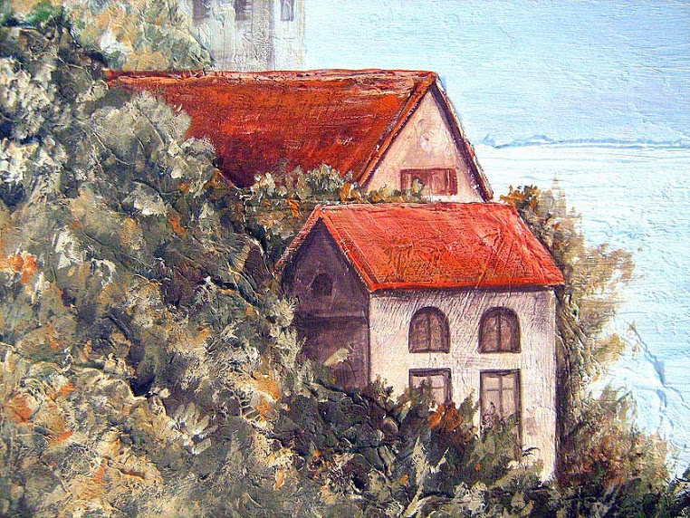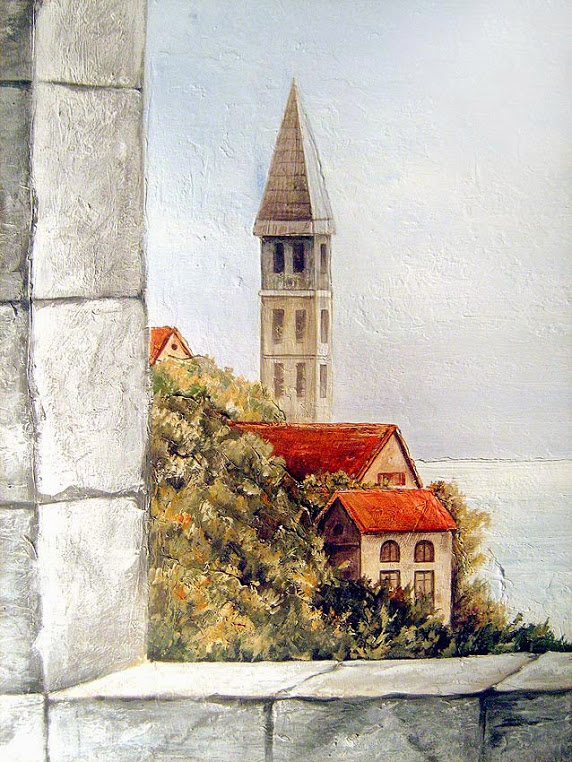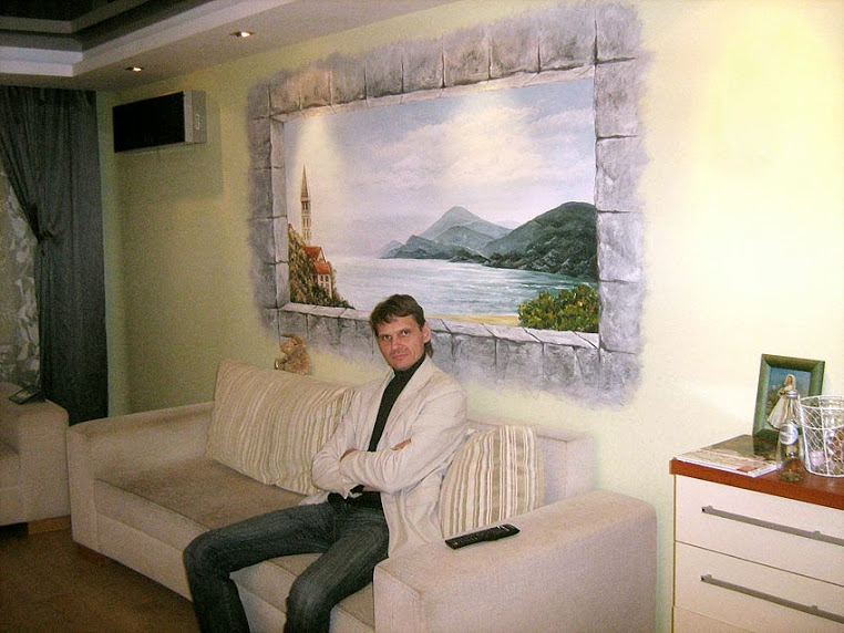 Роспись на стене в гостиной комнате, сделанная по фотографии. Запечатлены воспоминания о проведенном отпуске в Черногории.