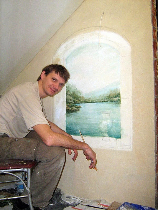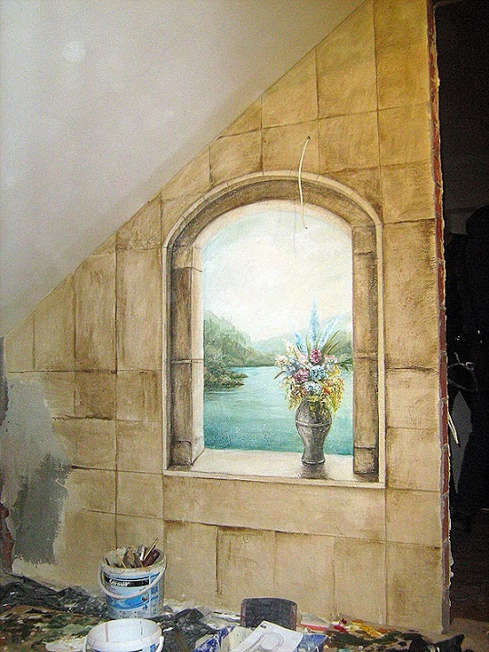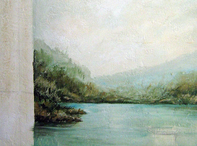 Художественная роспись на стене в ванной комнате. Пейзаж.