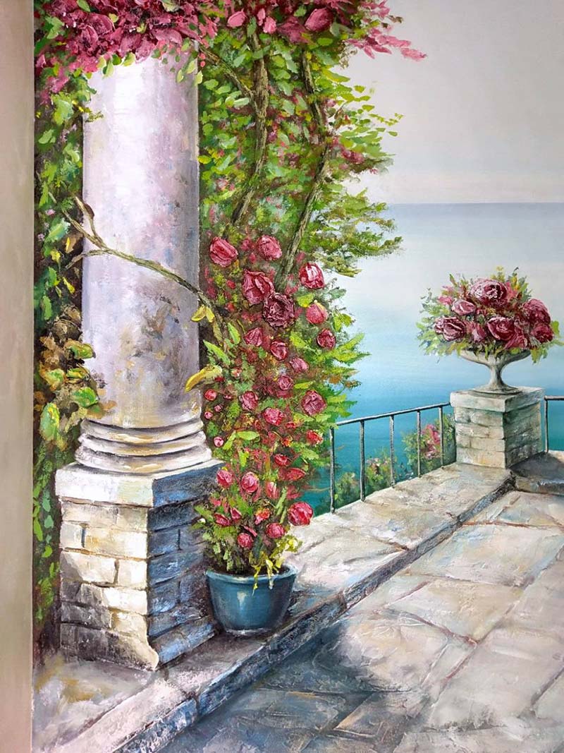 Роспись обеденной зоны с элементами лепнины 270х250см.