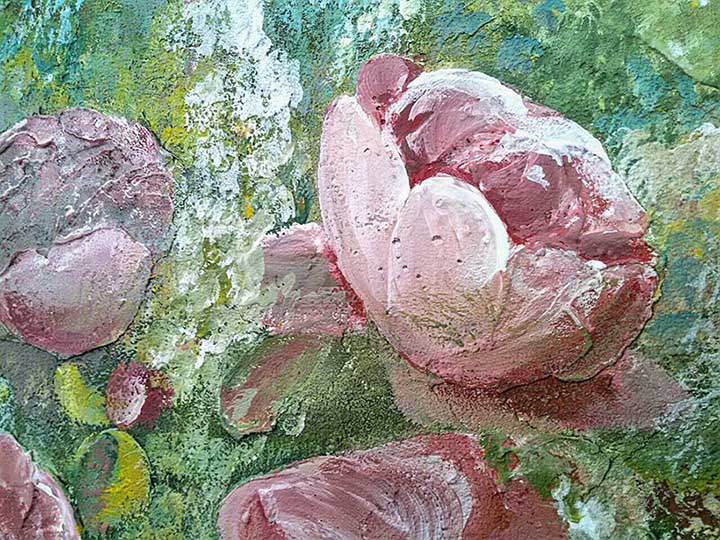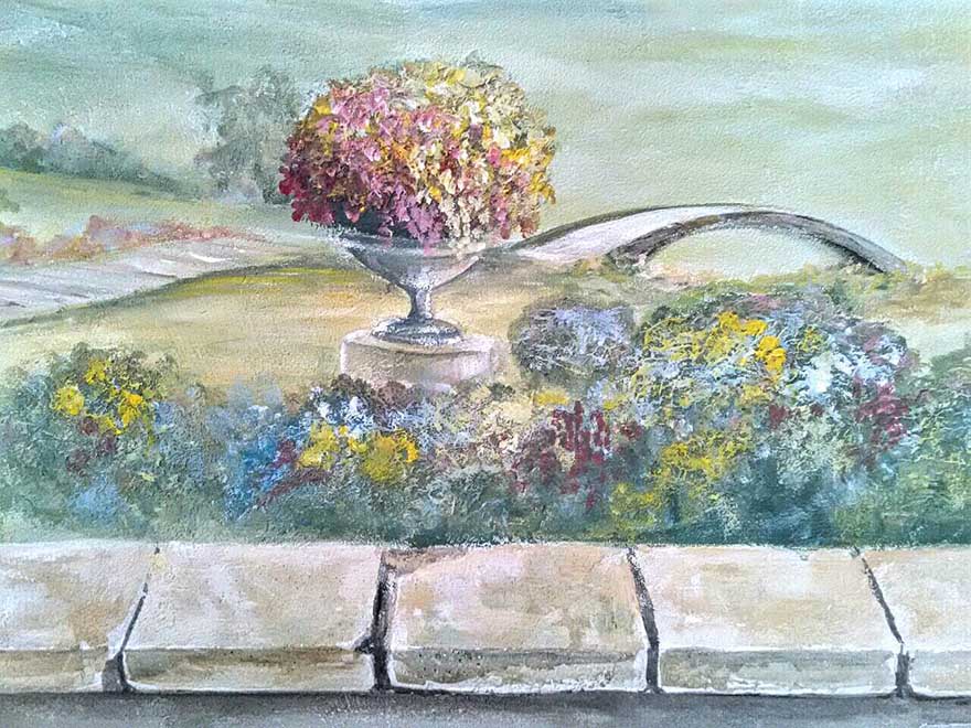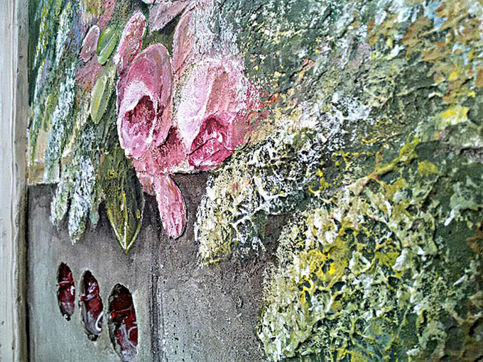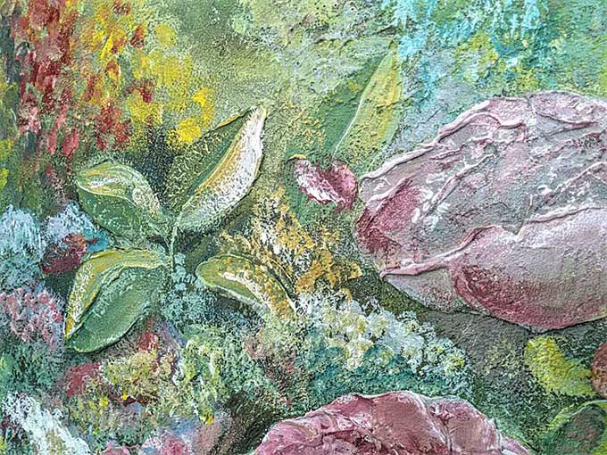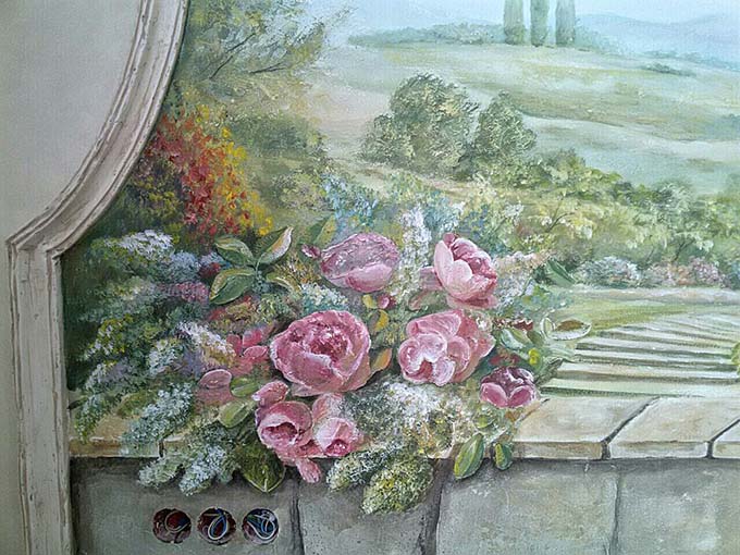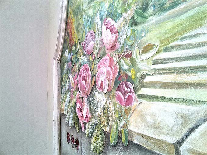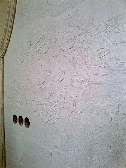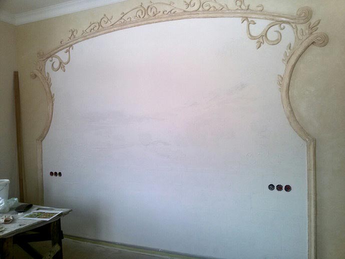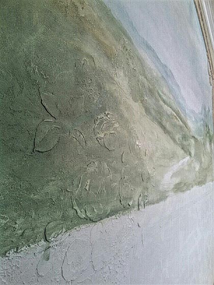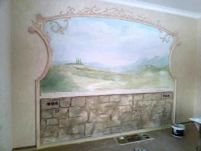 Роспись спальни (3x2.5 м, декоративная штукатурка, барельеф). Пейзаж с элементами барельефа.